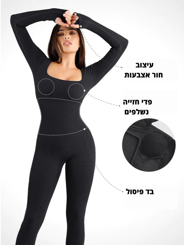 סרבל ספורט או רומפר עם צוואר מרובע ללא תפרים