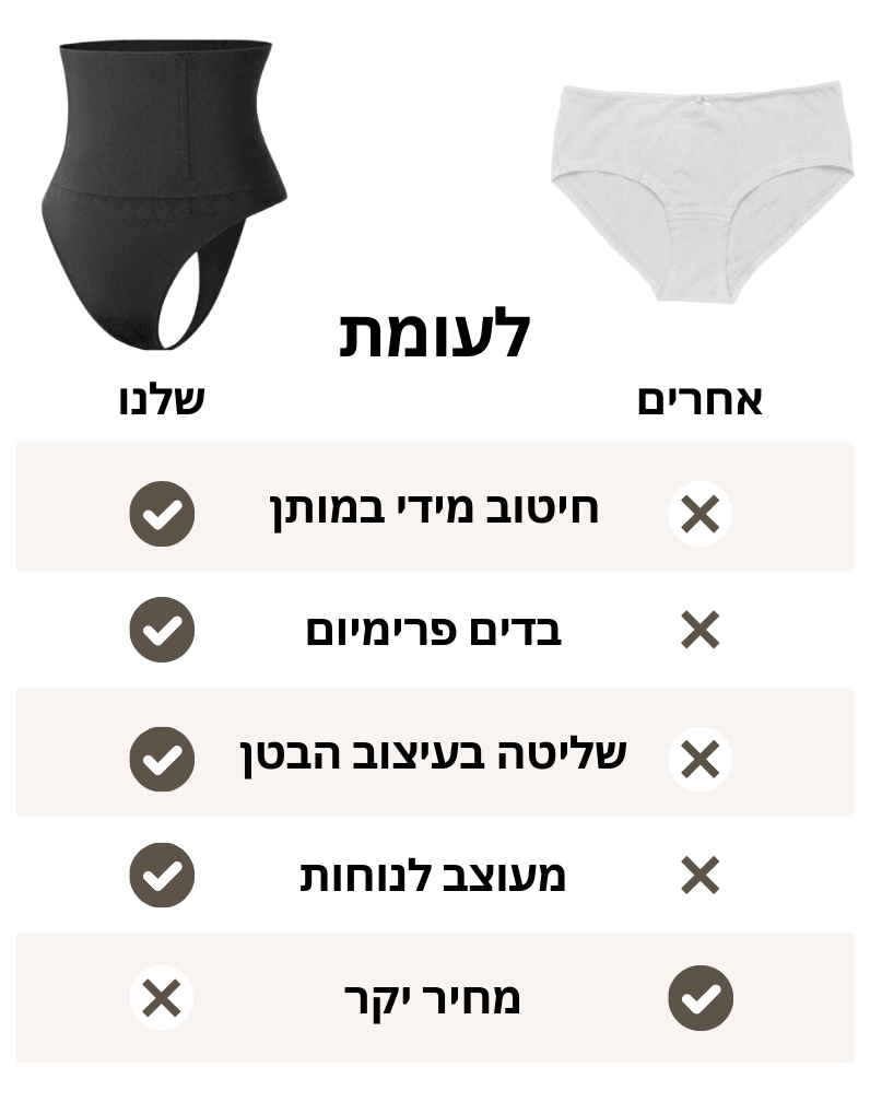 סיימי עם קפלי הבטן והרגישי איך הבגדים שאת אוהבת מתאימים בצורה מושלמת. הביטחון שלך ימריא עם תחושת נוחות ומראה שאין לו תחליף.